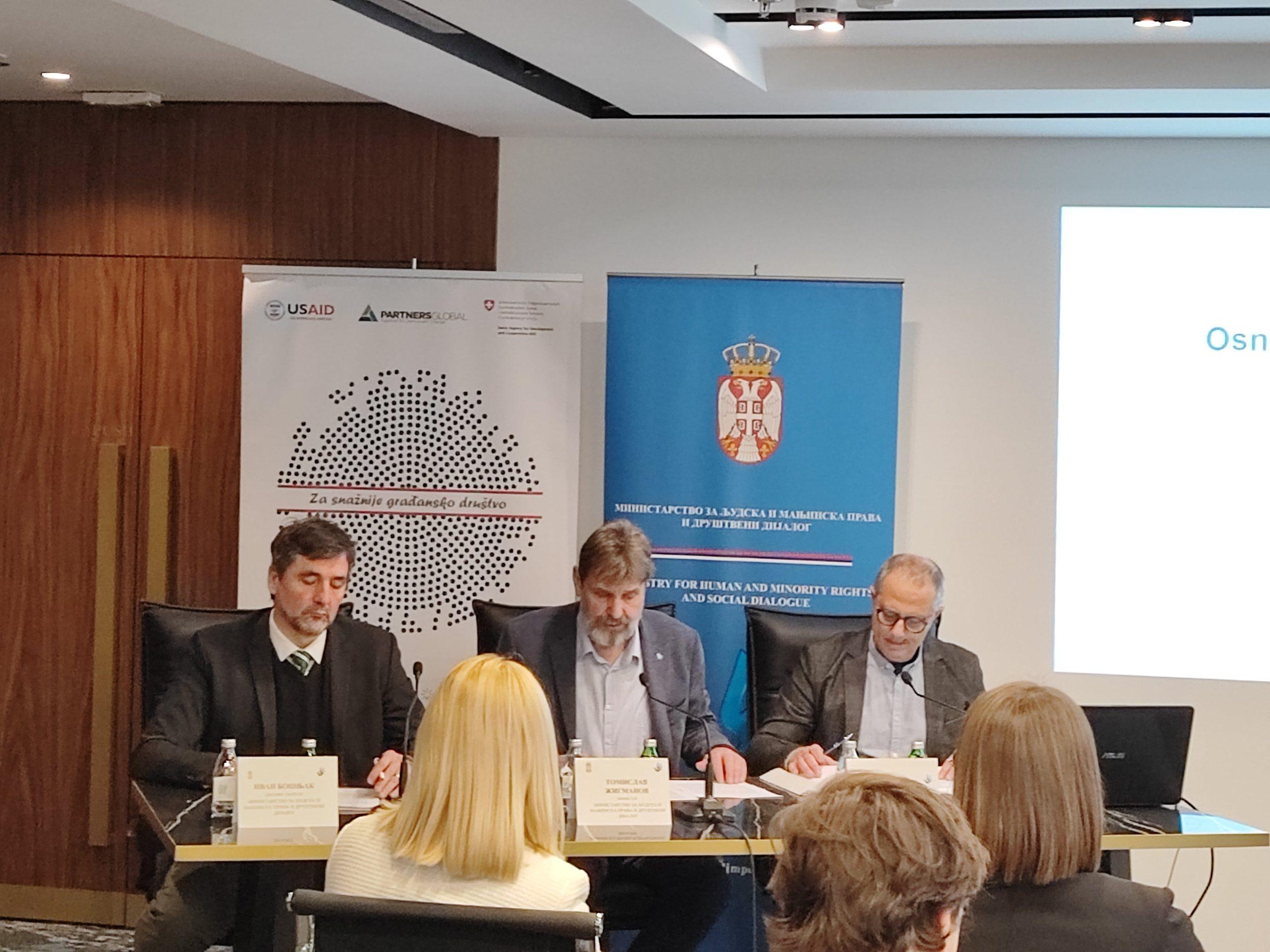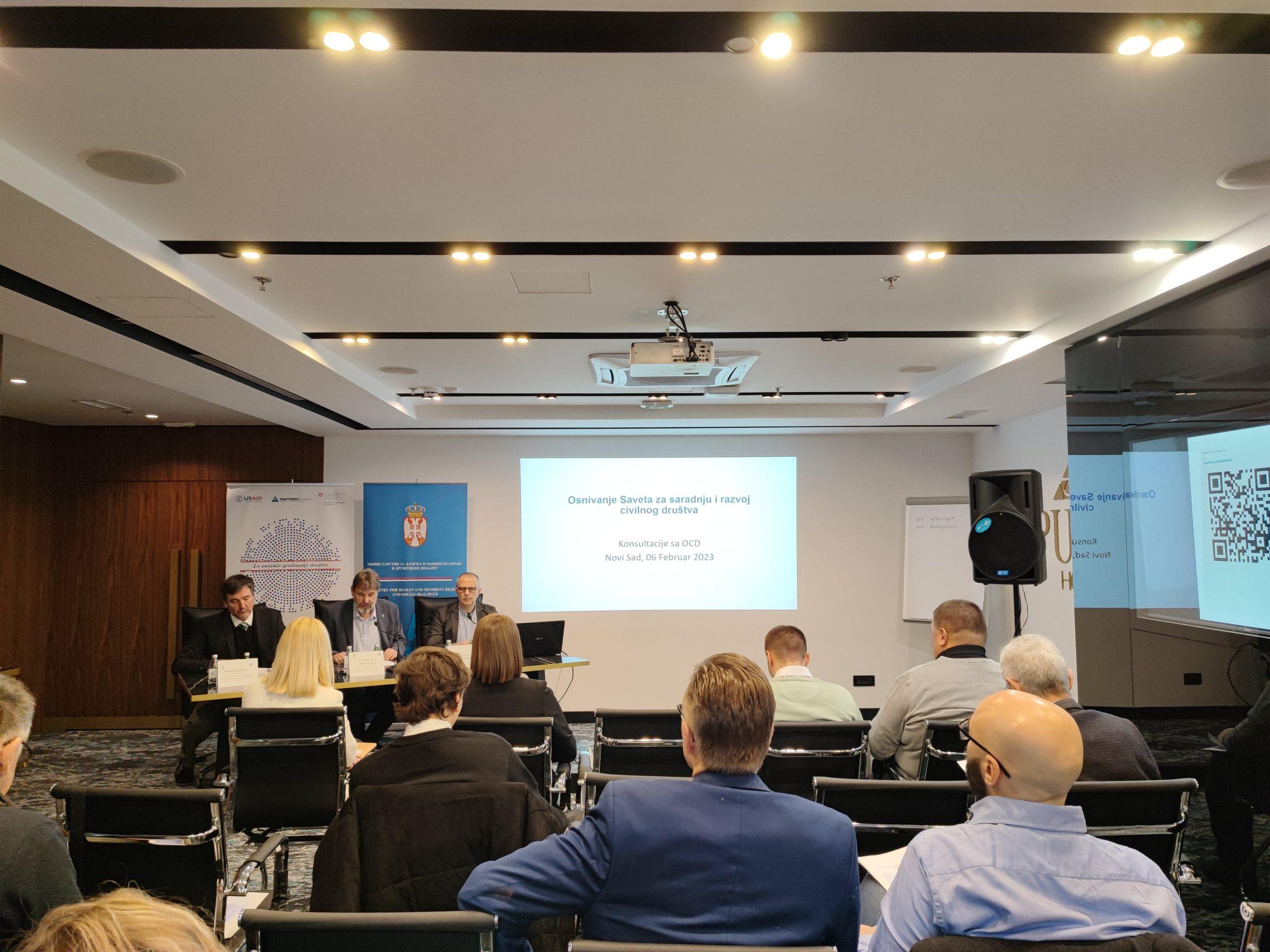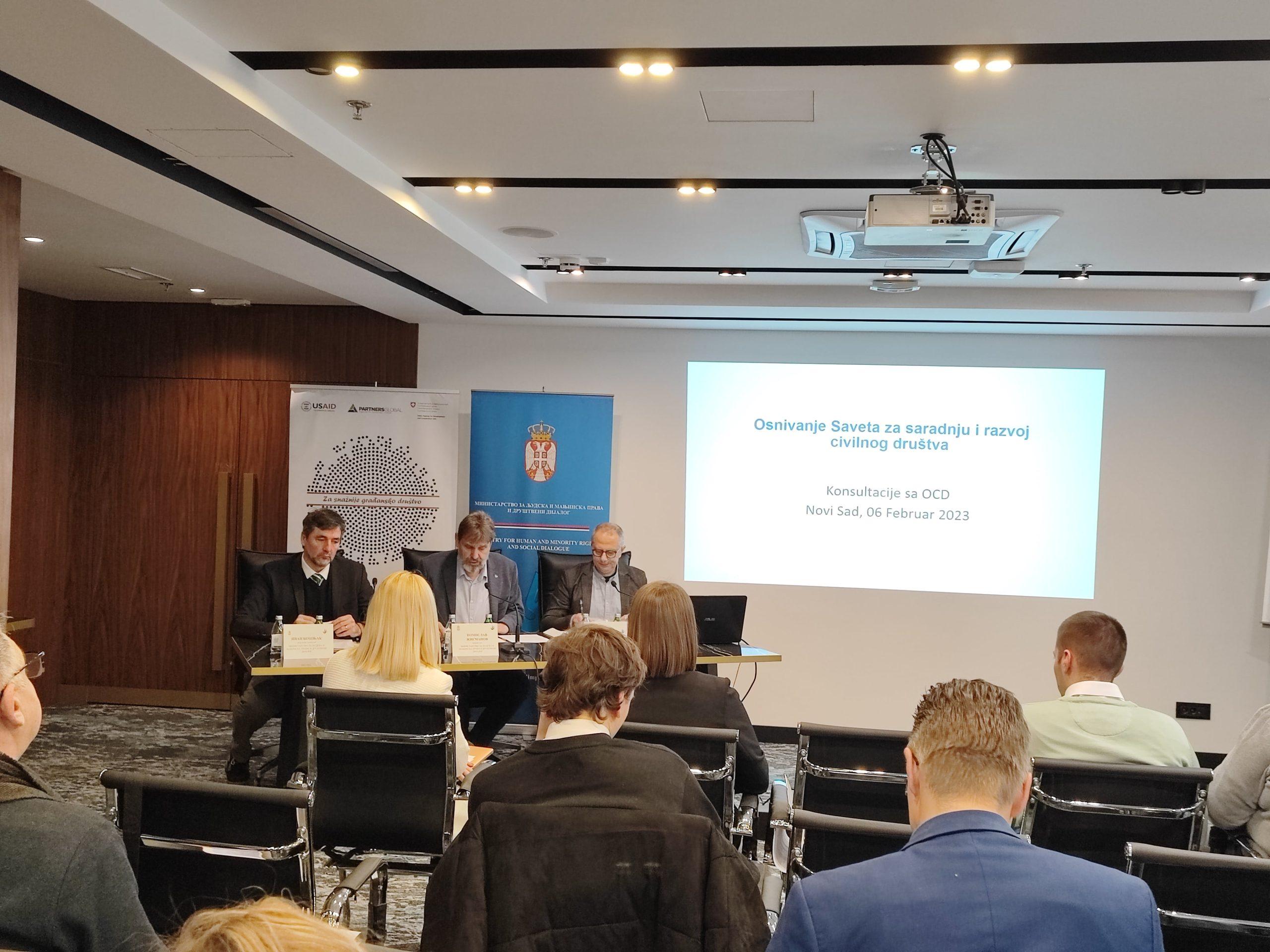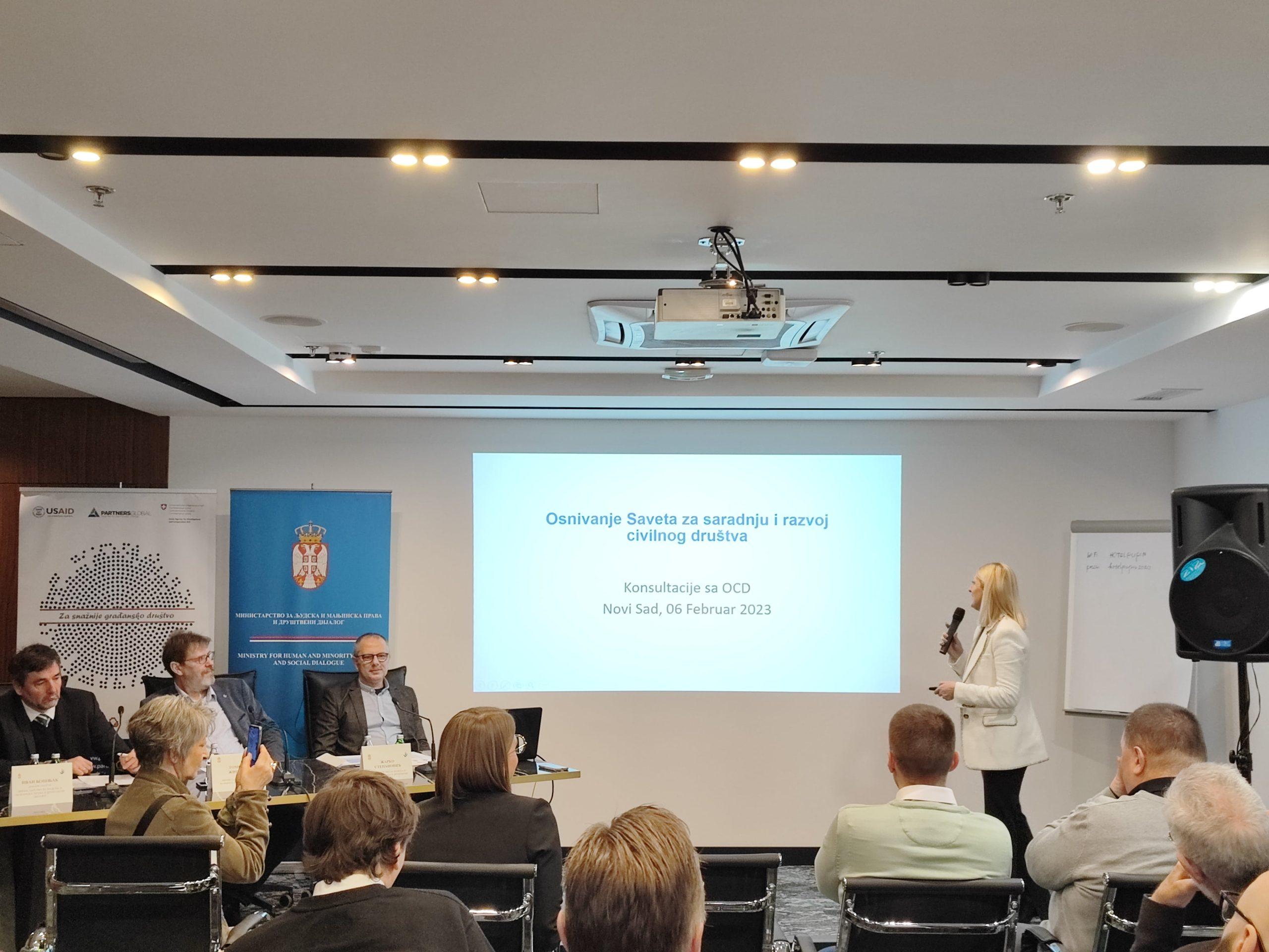 Plan Ministarstva je da na javnim prezentacijama i diskusijama sa predstavnicima organizacija civilnog društva analizira Predlog za osnivanje Saveta za saradnju sa civilnim društvom. Ove prezentacije su pored Novog Sada, održane u Beogradu i Nišu.